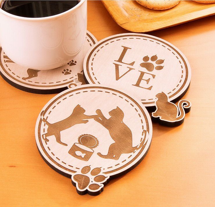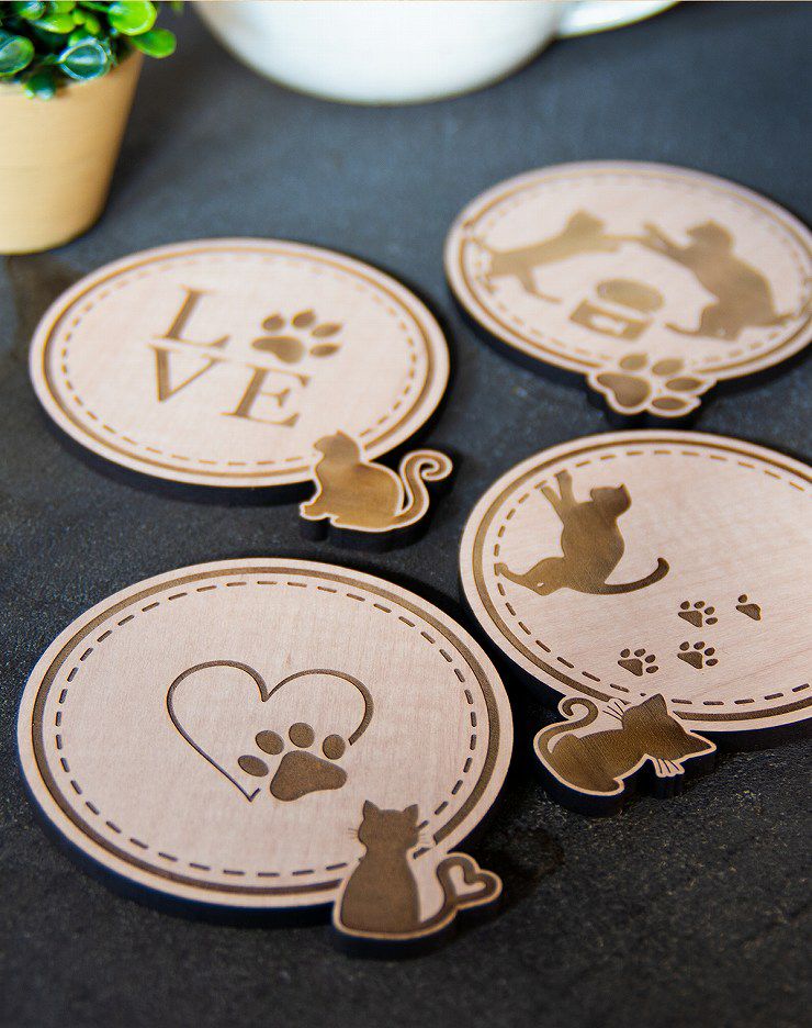 木製(MDF材)のコースターで、ユニークな模様を楽しめます!