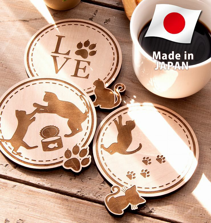 coaste019 コースター 3枚セット 木製 絵柄が見える 4種から選べる デザイン 猫 ねこ ネコ コースター019
