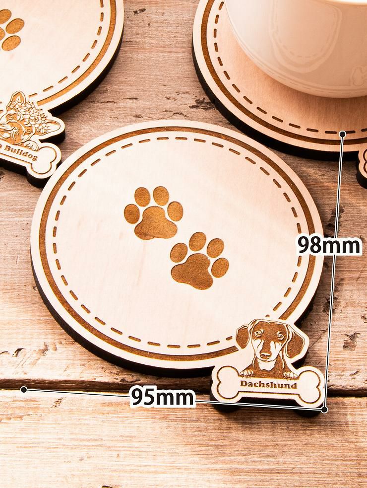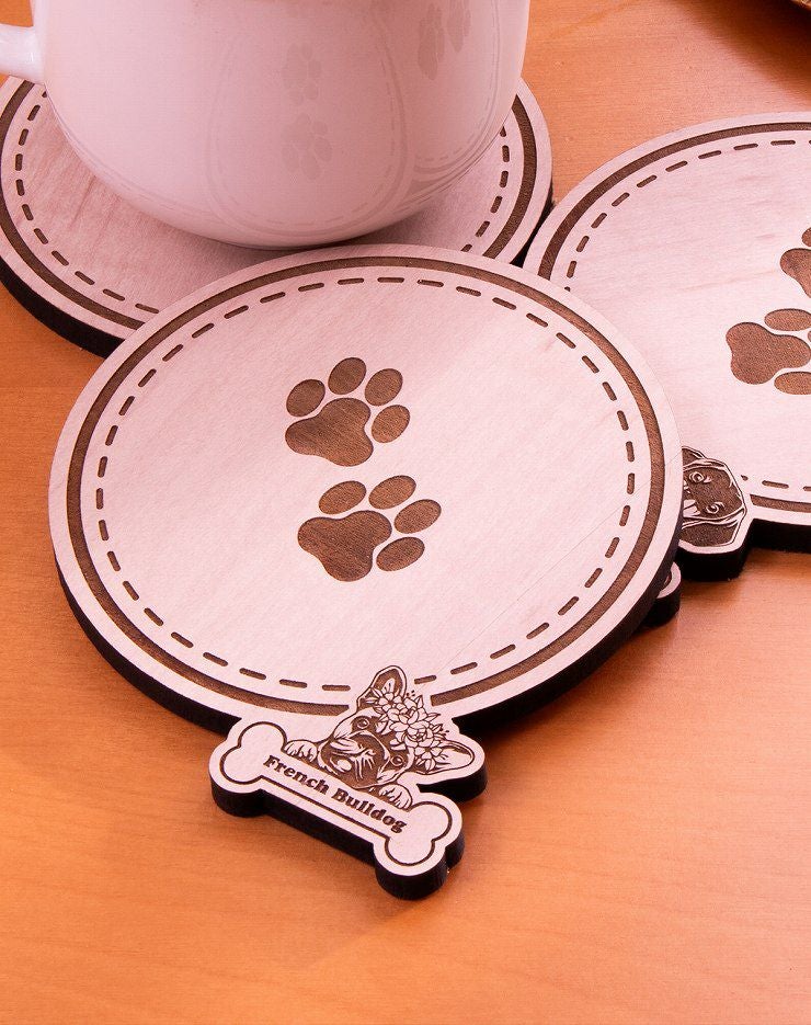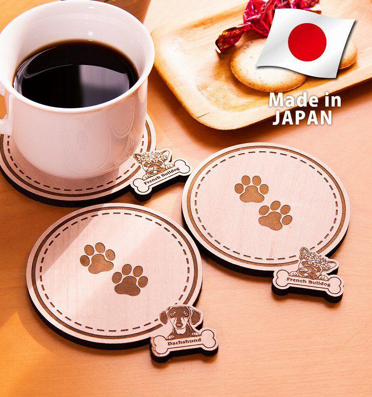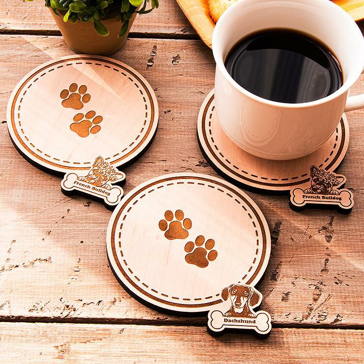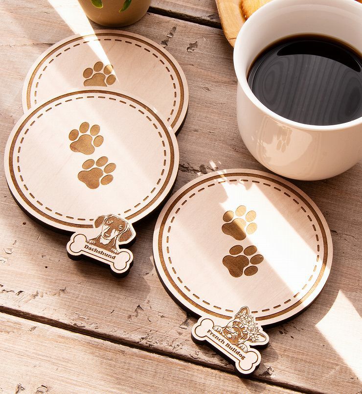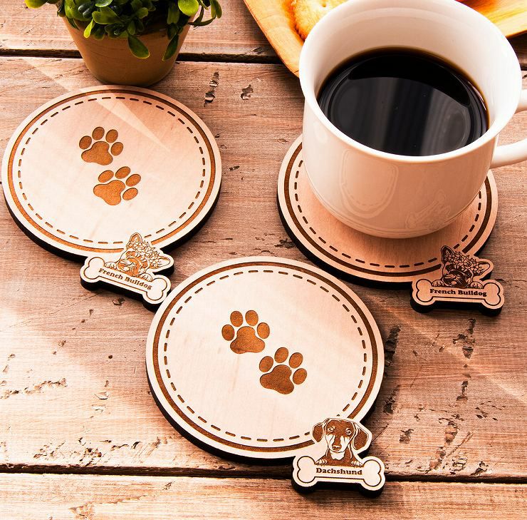 木製コースター 3枚セット 種から選べる デザイン フレンチブルドッグ 犬