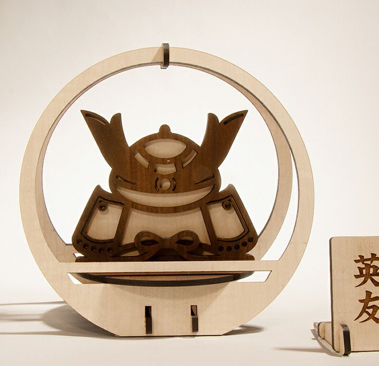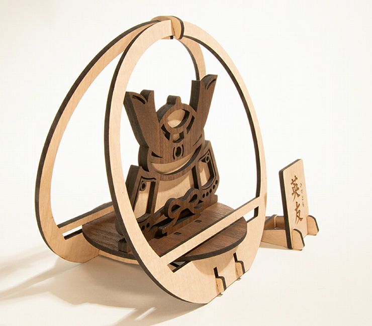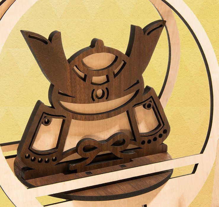 国産MDF材を使用した兜飾りは、木目調シート紙貼りで、