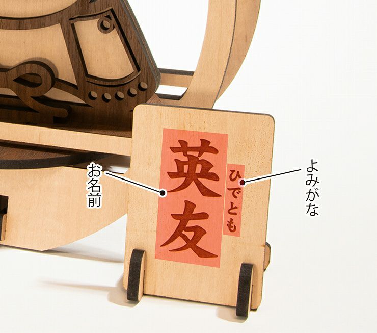 名入れ札にお子様の「お名前」と「よみがな」を記入することが可能です。世界に一つだけの特別な兜飾りとなり、お子様の成長の節目をより思い出深いものにします。