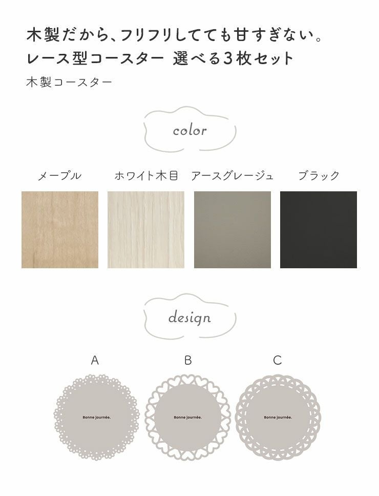 coaster026 木製コースター 【選べるレース柄 3枚セット】 コースター キッチン小物 キッチン雑貨 コースター026