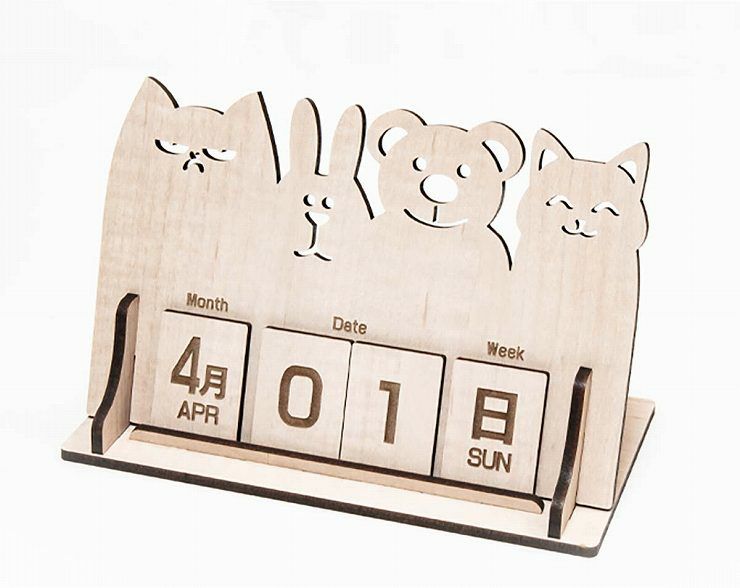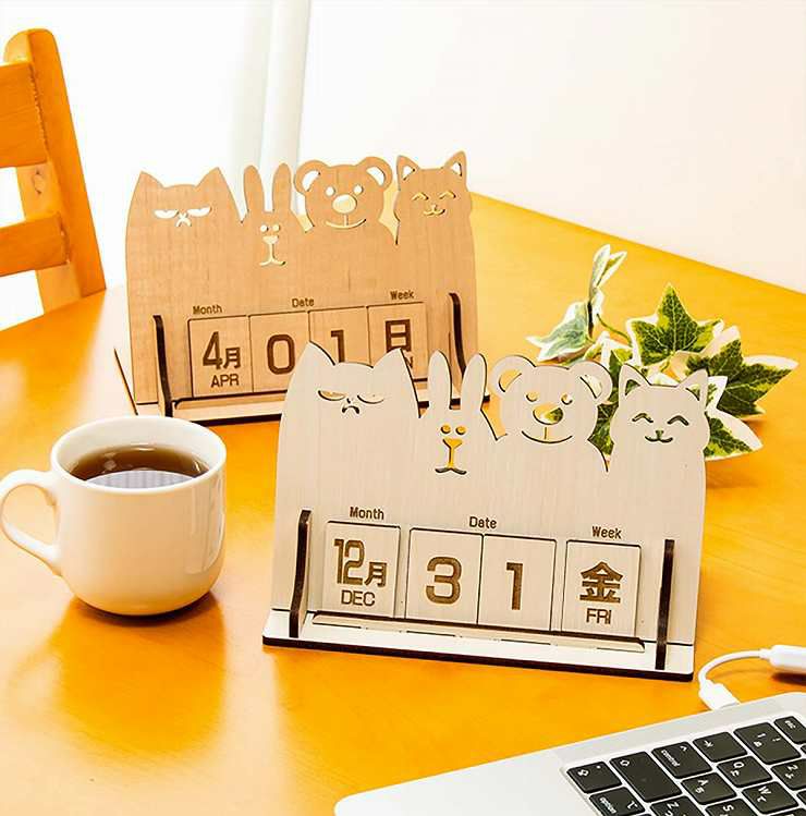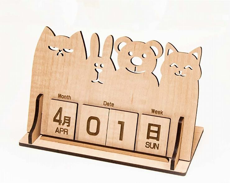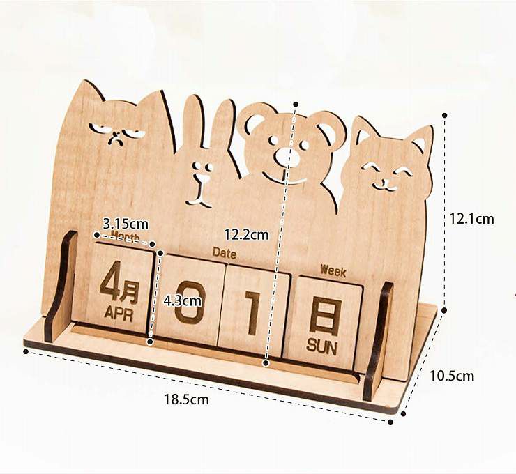 木製卓上カレンダー 万年カレンダー アニマル カレンダー002