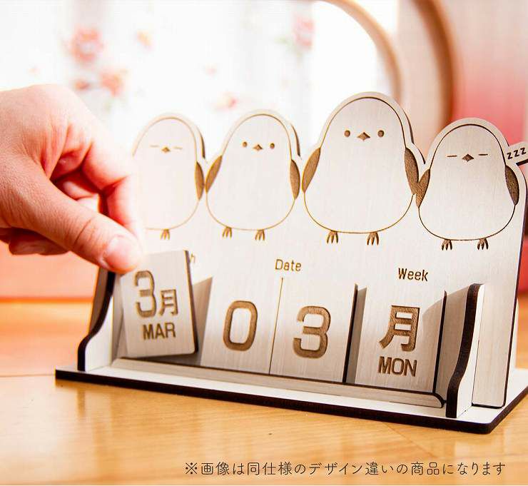木製卓上カレンダー 万年カレンダー シマエナガ カレンダー010
