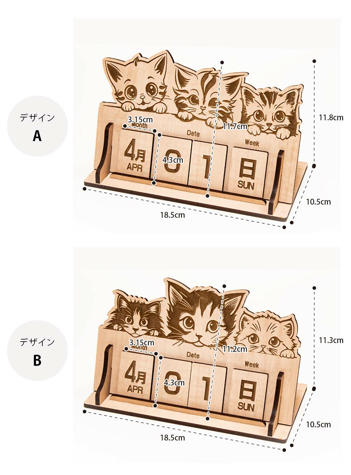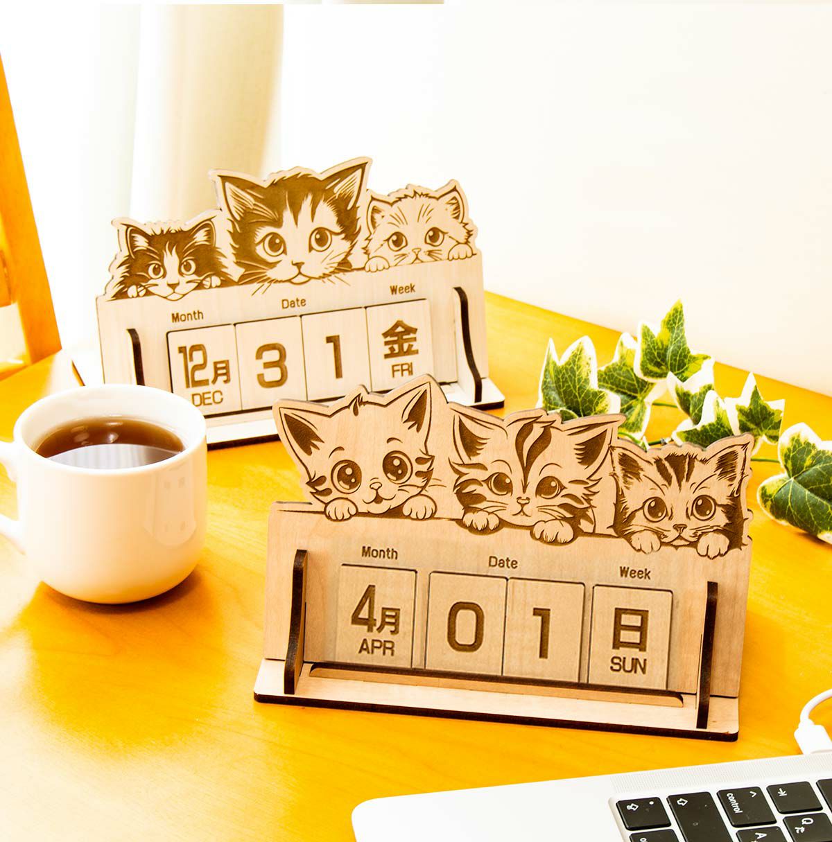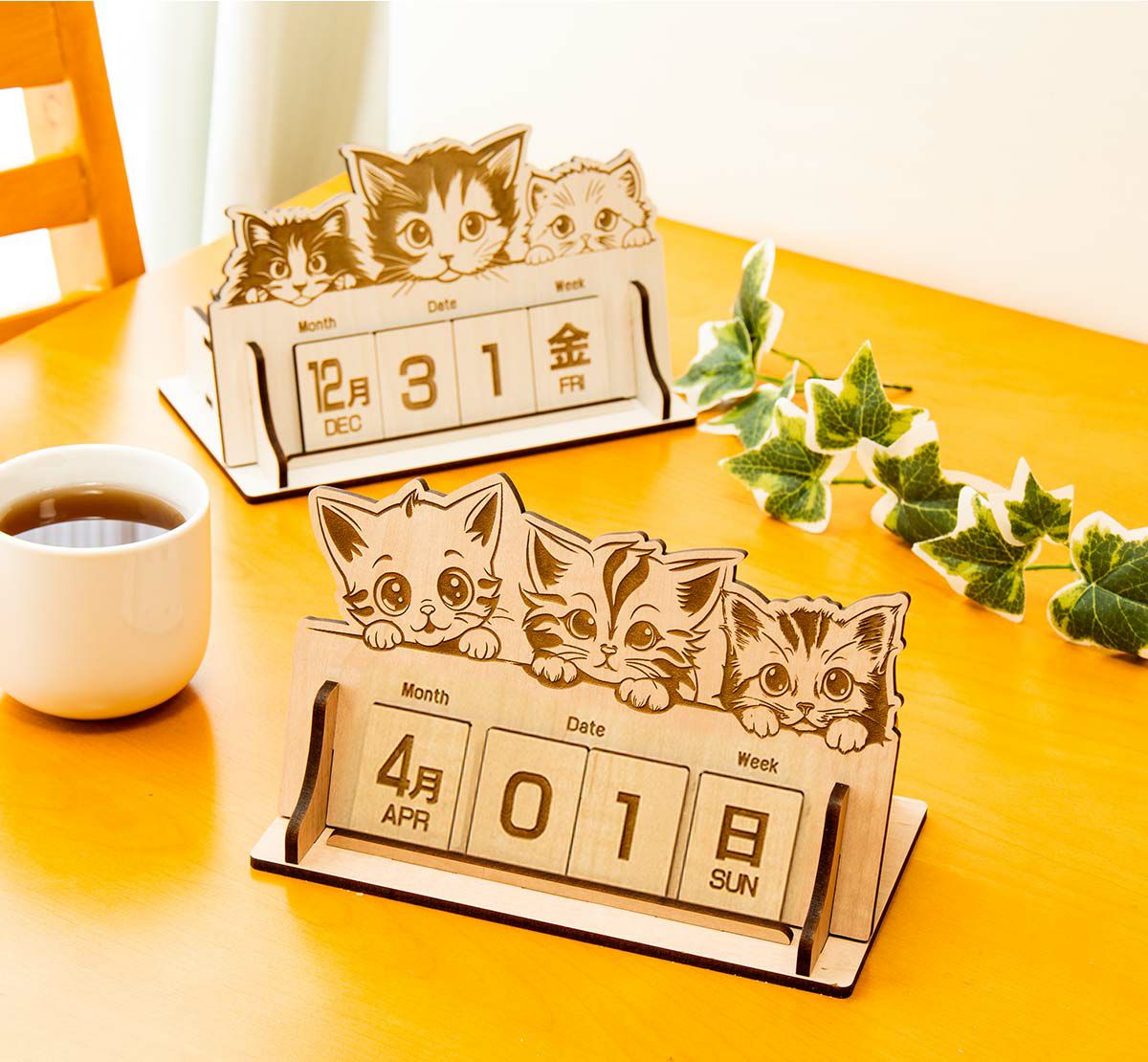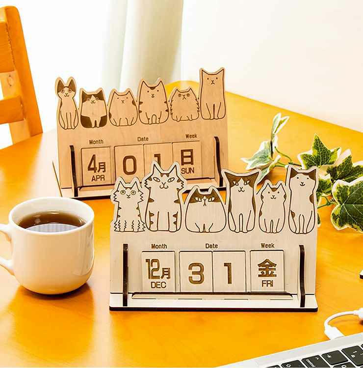 木製卓上カレンダー 万年カレンダー ネコ カレンダー008