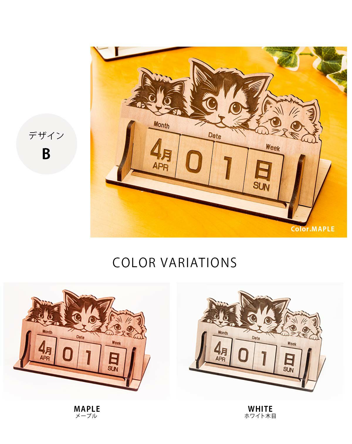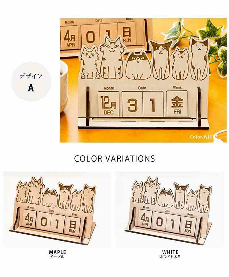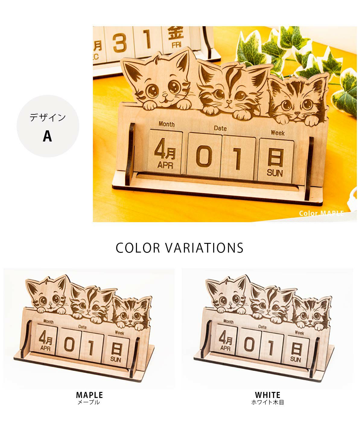 木製卓上カレンダー 万年カレンダー ネコ カレンダー005