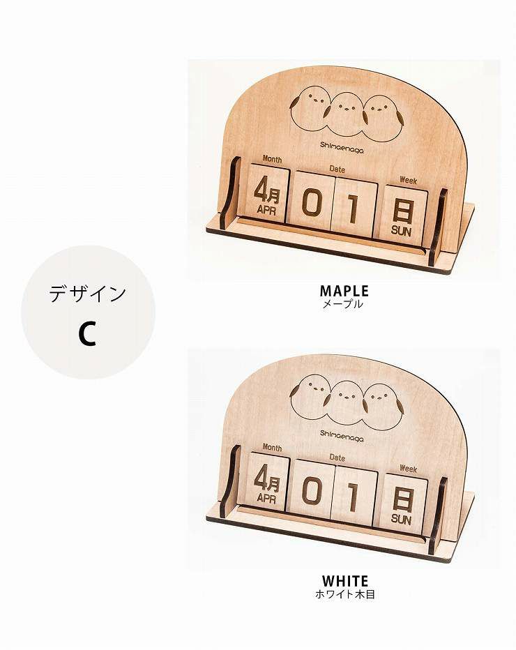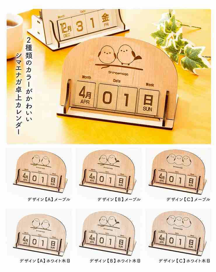 木製卓上カレンダー 万年カレンダー シマエナガ カレンダー003