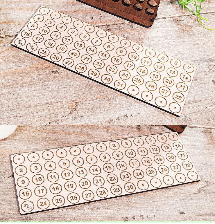 30日と31日の日付板を両面に施しているため、月ごとの日数の異なる変更に対応しています。これにより、カレンダーの切り替えがよりスムーズで便利になります。