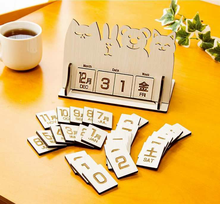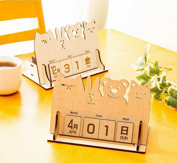 木製卓上カレンダー 万年カレンダー アニマル カレンダー002