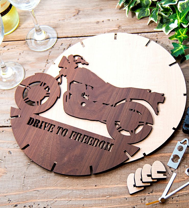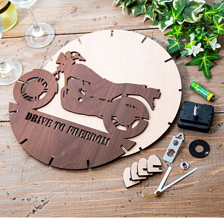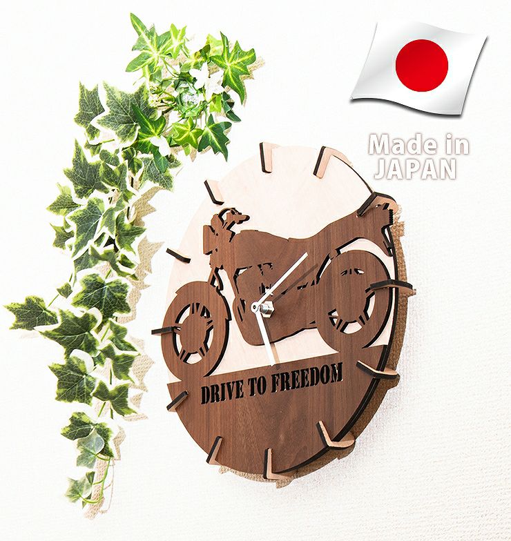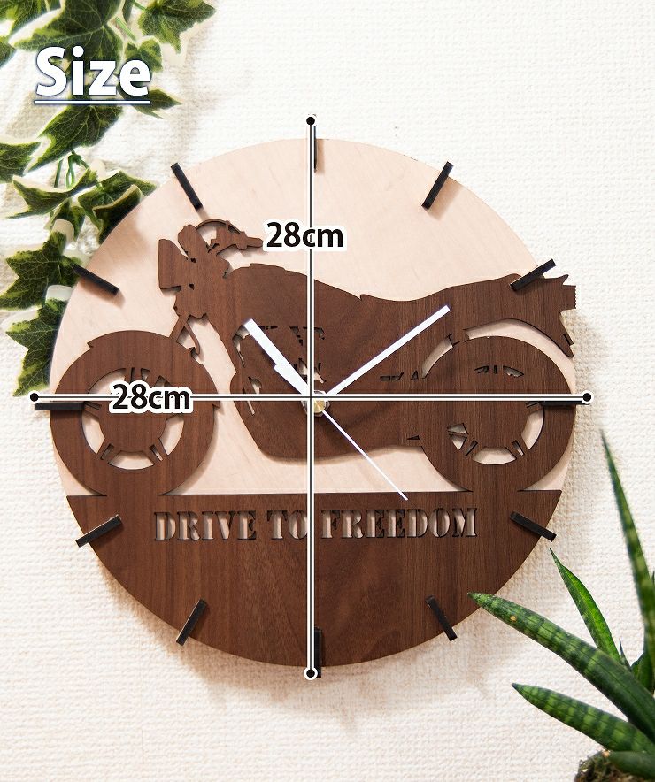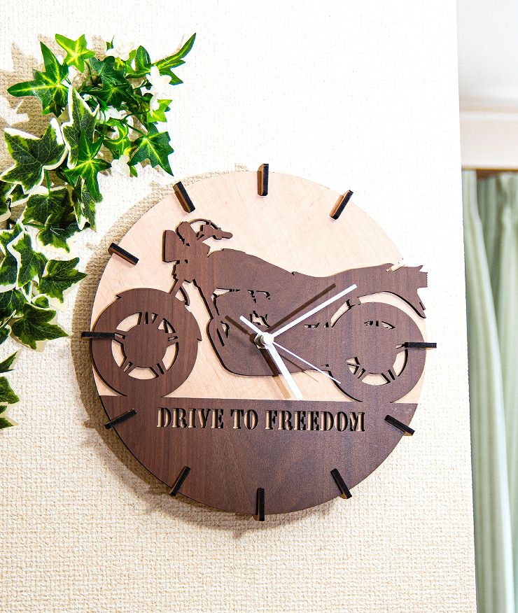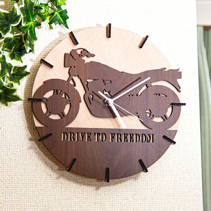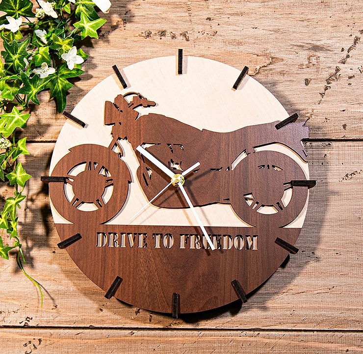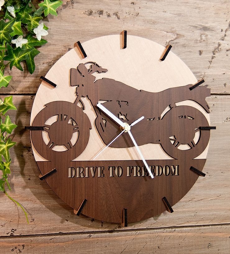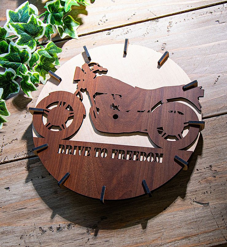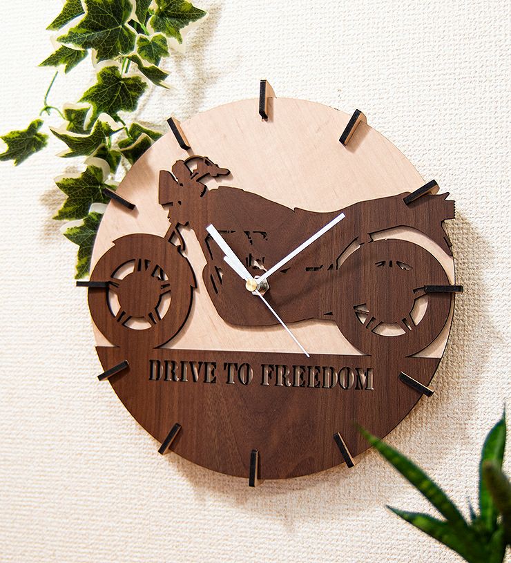 木製壁掛け時計 バイク ウォールクロック 壁時計 約28cm幅 アジアンテイスト おしゃれ 据え置き ウォールナット メープル 国産MDF おしゃれ 国産 北欧雑貨 まとめ買い 組み立て レーザー加工 雑貨