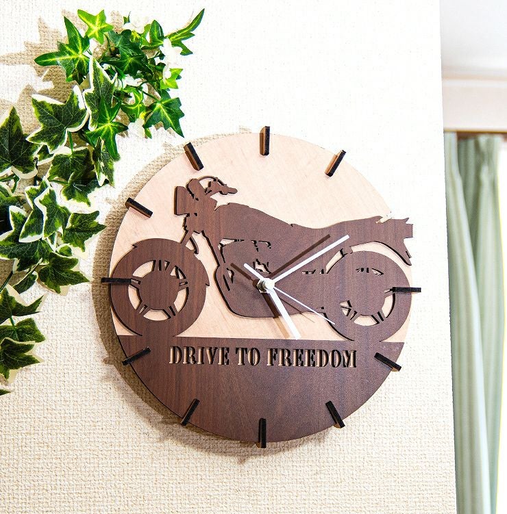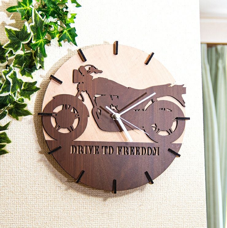 clock002 木製壁掛け時計 バイク ウォールクロック 壁時計 時計002