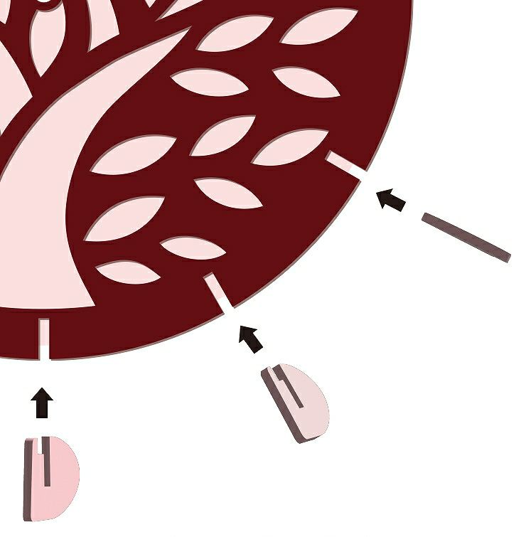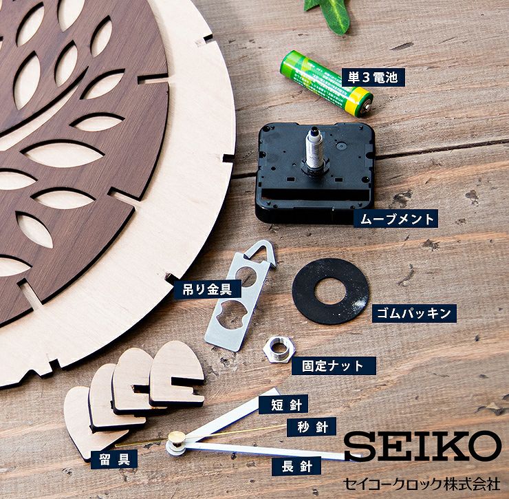 厚さ4mmのMDF材2枚重ねの特殊構造は、時計にボリューム感と立体的な質感、強度をもたらします。視覚的な魅力と組み立て時の楽しさが魅力です。