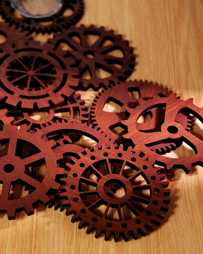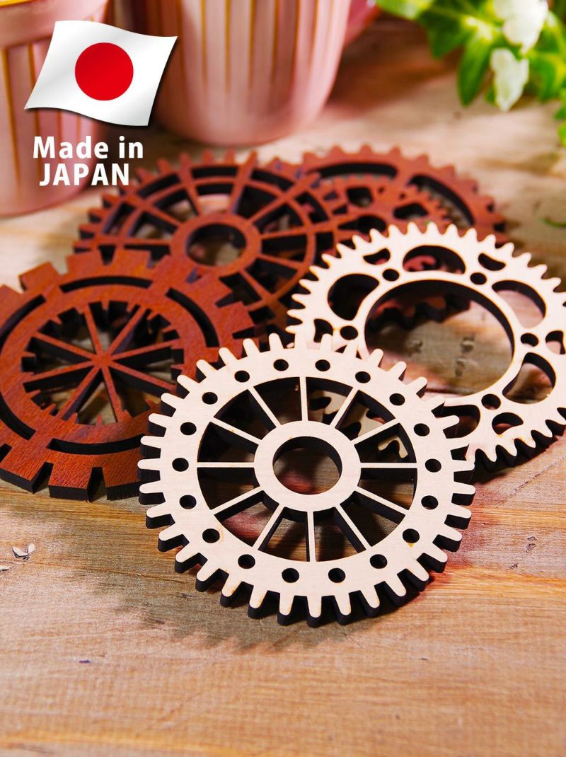 6種から選べる歯車デザイン 木製コースター 4枚セット 9cm×9cm コースター005