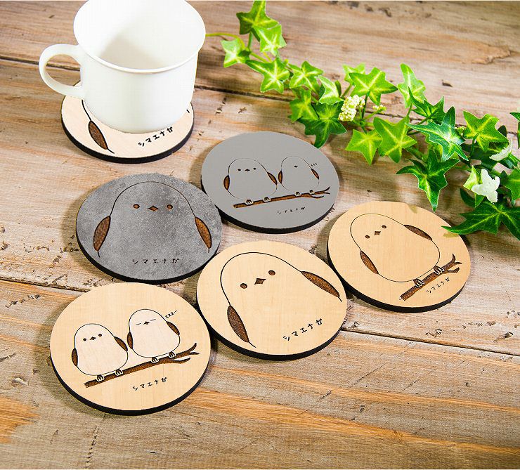 シマエナガの愛らしさと木の温もりが融合したコースターで、贅沢なティータイムをお楽しみください。※ウォールナット色は販売終了(廃盤)となりました。予めご了承
