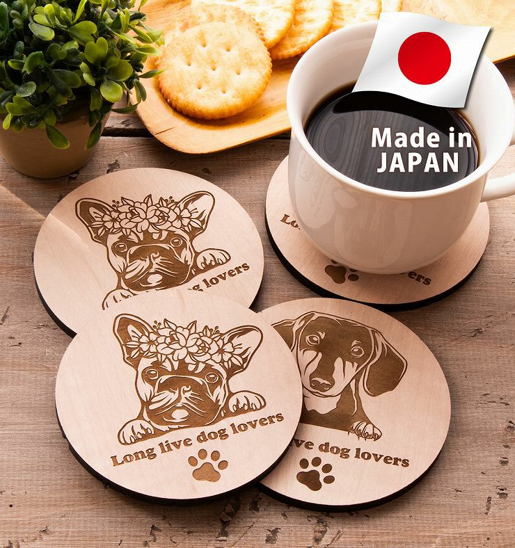 コースター 4枚セット 木製2種からミニチュアダックスフンド フレンチブルドッグ 犬 コースター021
