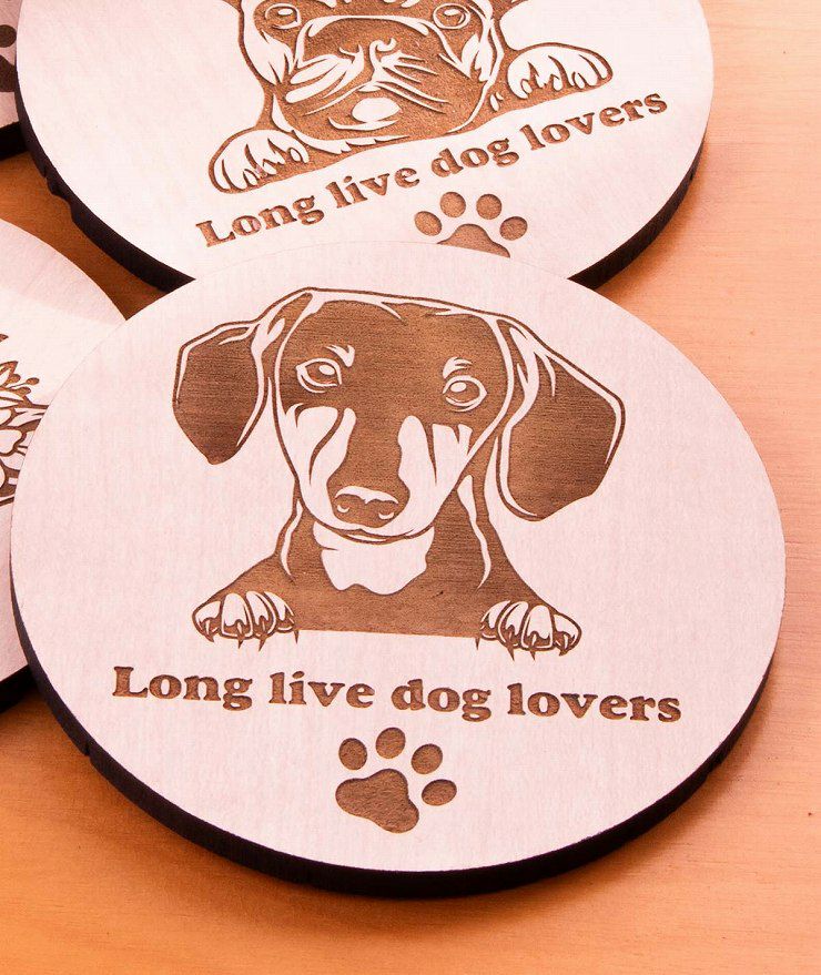 木製コースター 4枚セット 2種から選べるデザイン ミニチュアダックスフンド フレンチブルドッグ 犬