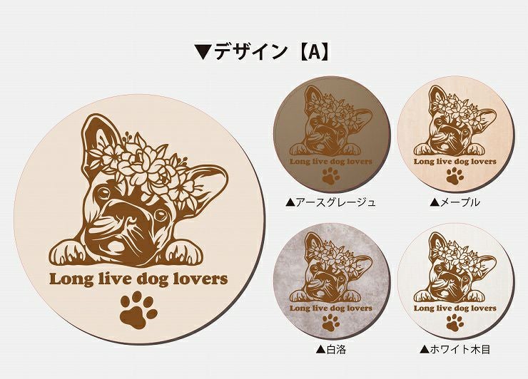 コースター 4枚セット 木製 2種から選べるデザイン ミニチュアダックスフンド フレンチブルドッグ 犬 コースター021