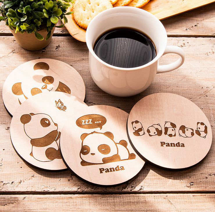 コースター 4枚セット 木製 9種から選べるデザイン パンダ コースター017