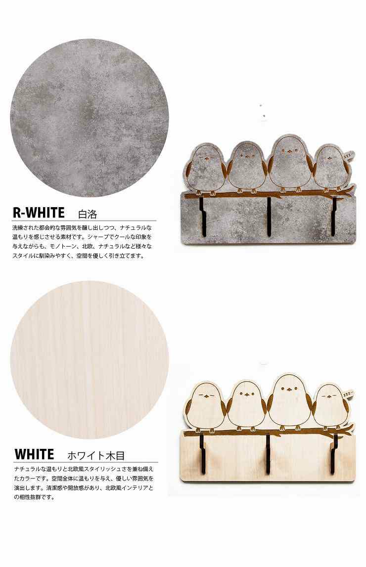 木製キーハンガー シマエナガ キーフックハンガー 3本フック キーハンガー002