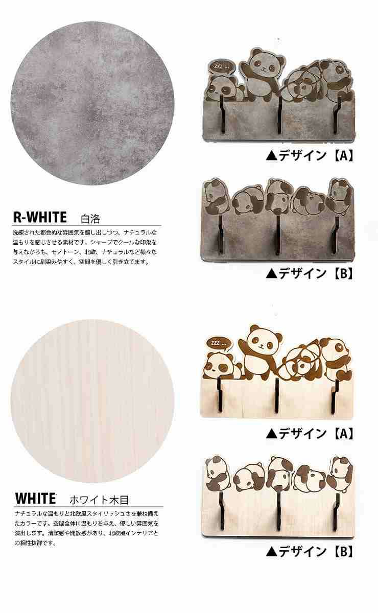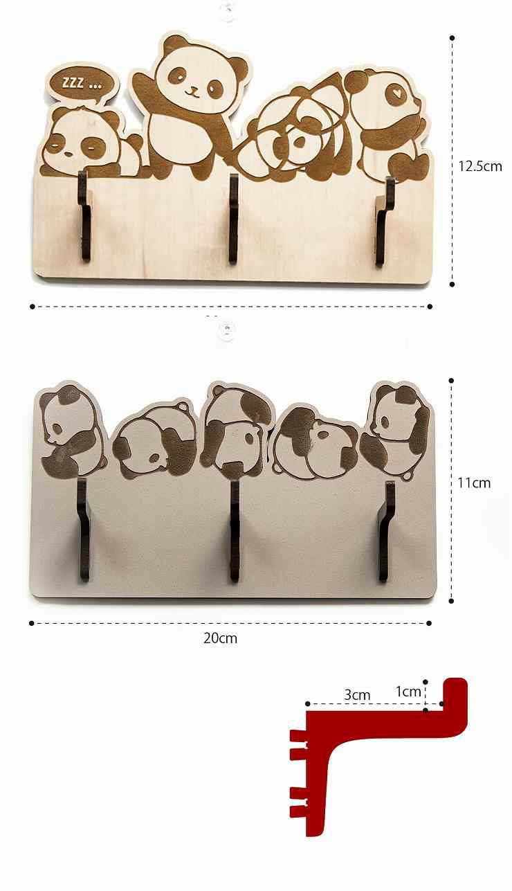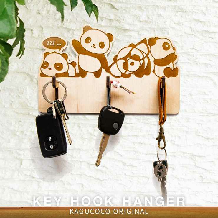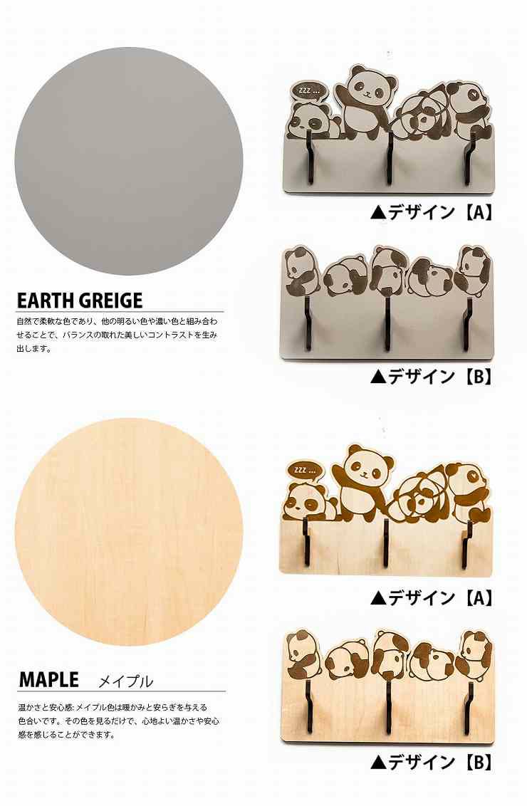 木製キーハンガー パンダ キーフックハンガー 3本フック キーハンガー003