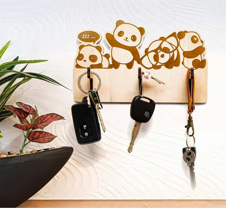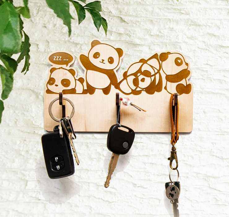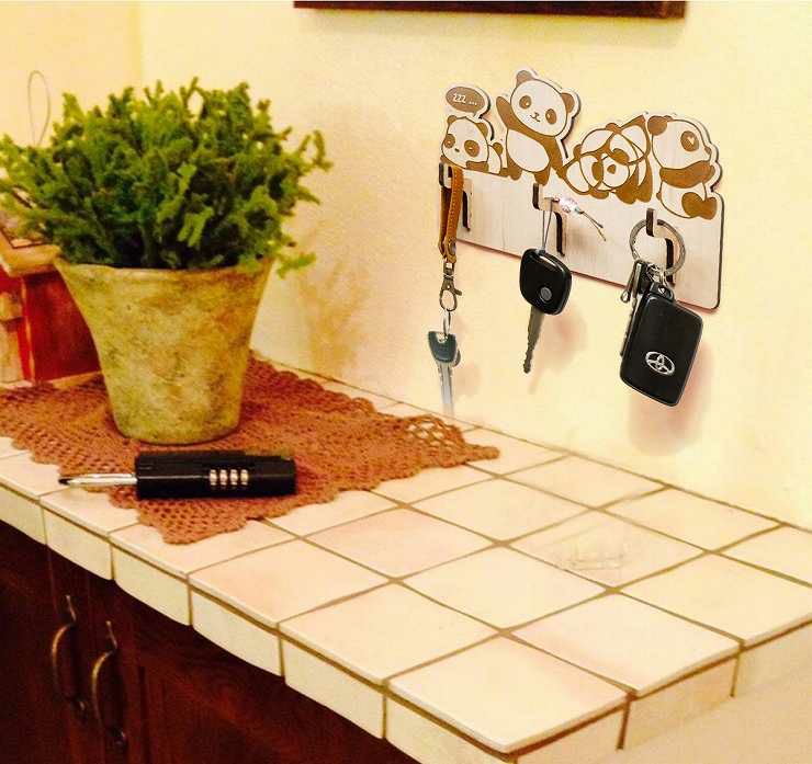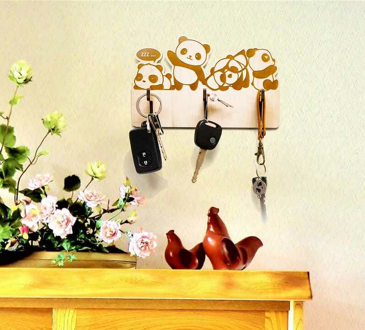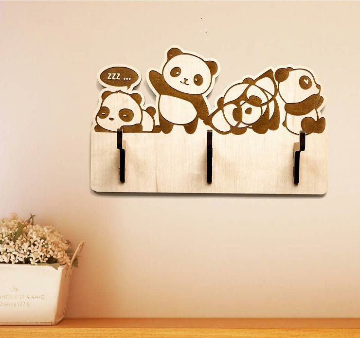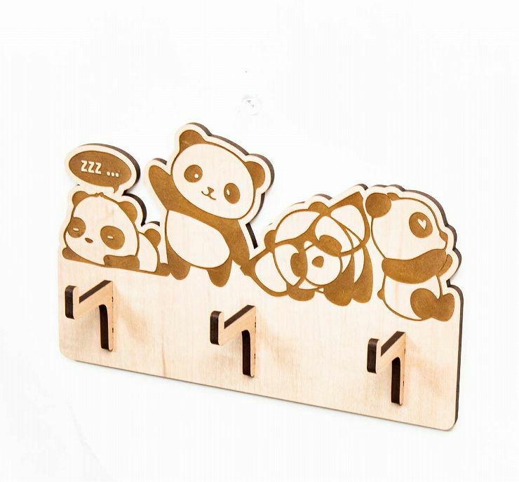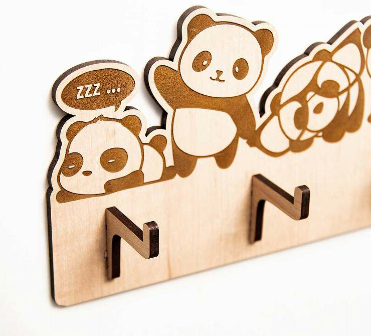 木製キーハンガー パンダ キーフックハンガー 3本フック キーハンガー003
