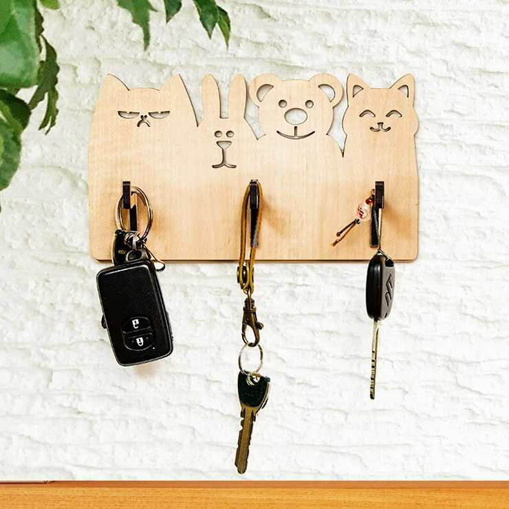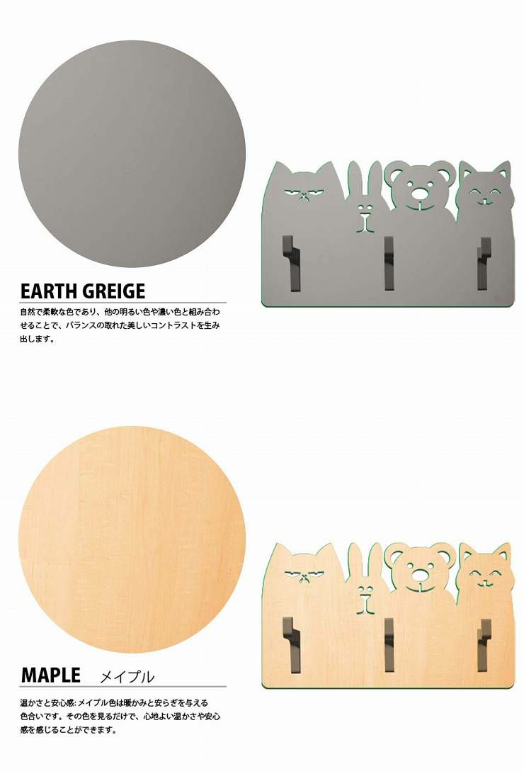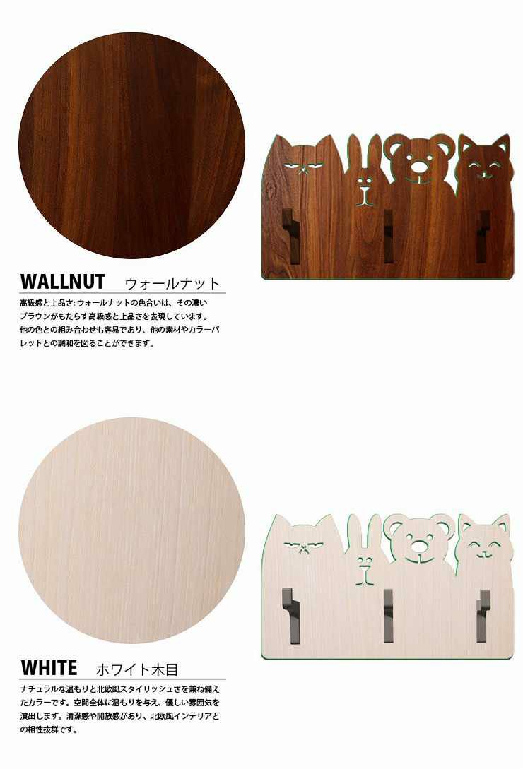 木製キーハンガー アニマル キーフックハンガー 3本フック キーハンガー004