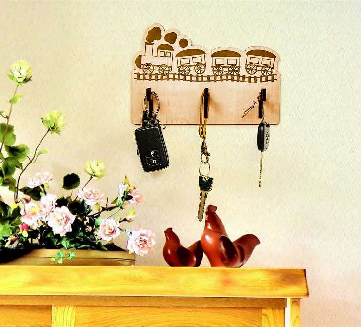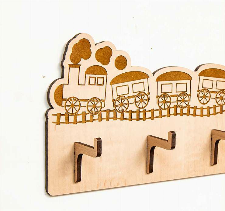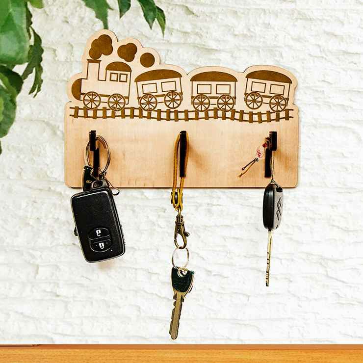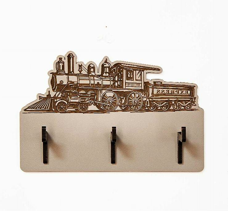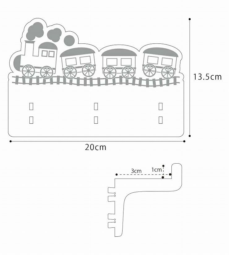 木製キーハンガー ポップな蒸気機関車 キーフックハンガー 3本フック キーハンガー007
