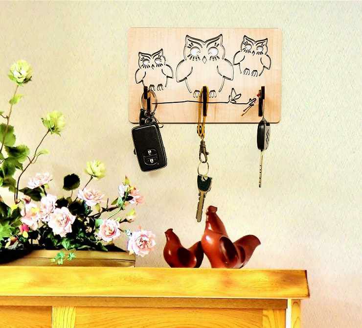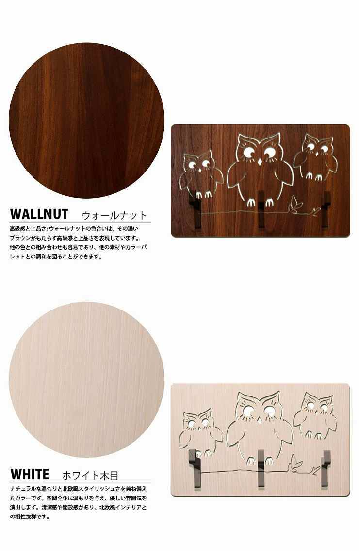 木製キーハンガー フクロウ キーフックハンガー 3本フック キーハンガー009
