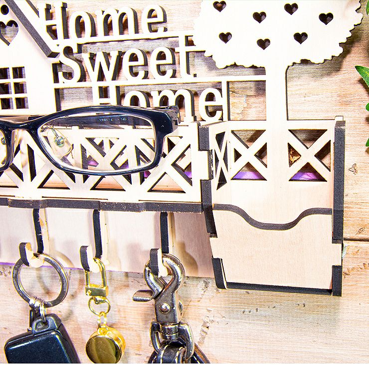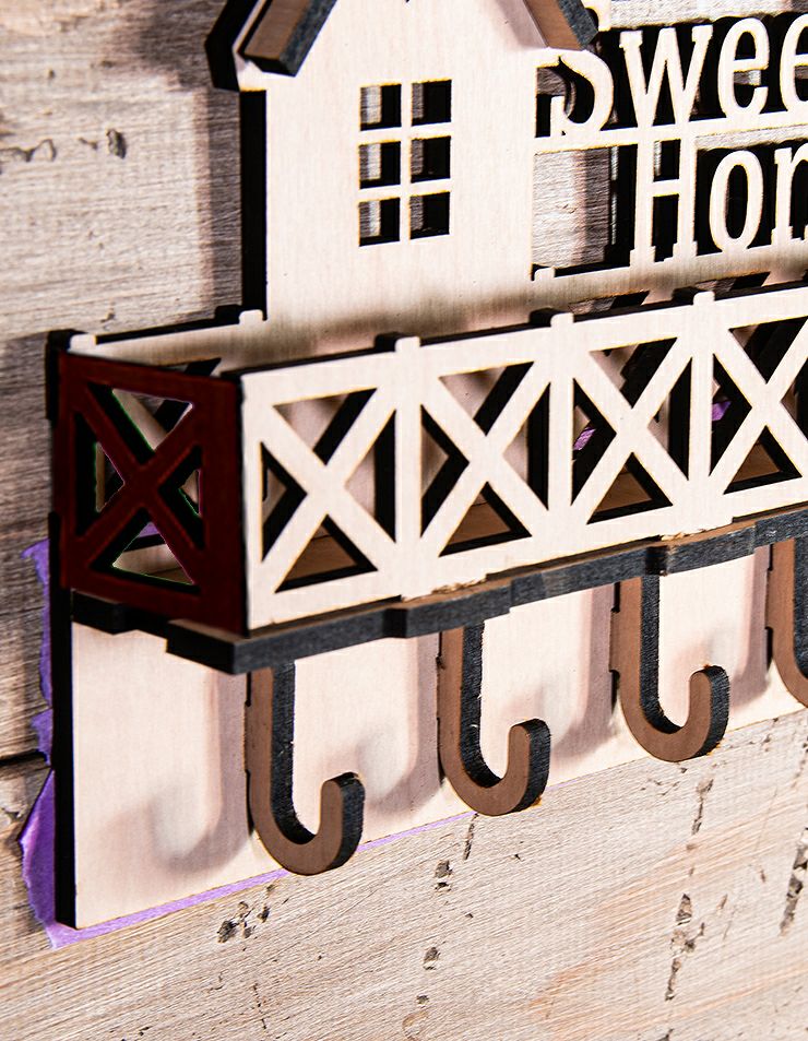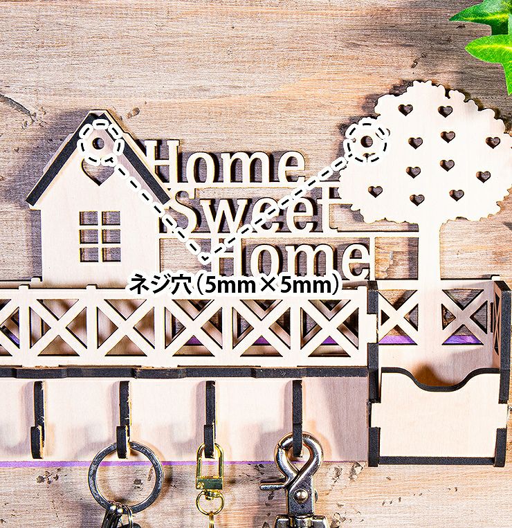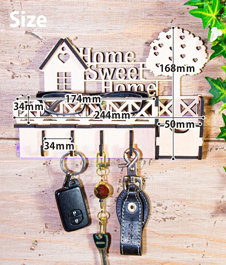 木製キーハンガー ハウス4本フック 多機能キーフックハンガー キーハンガー001