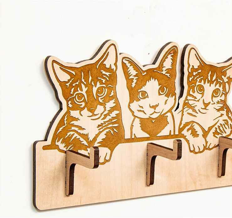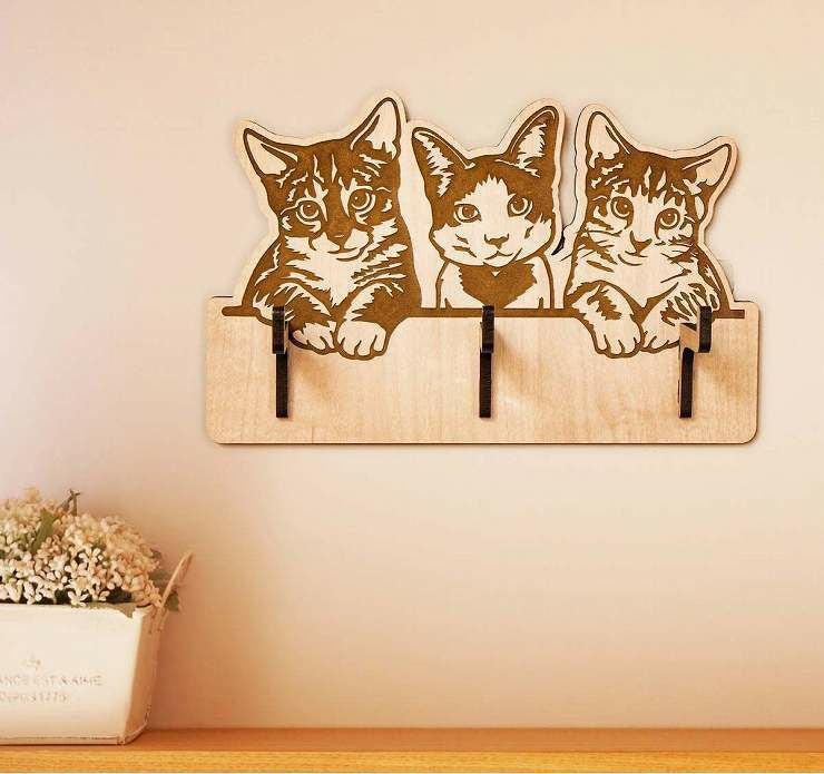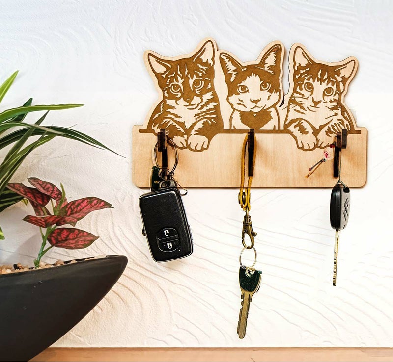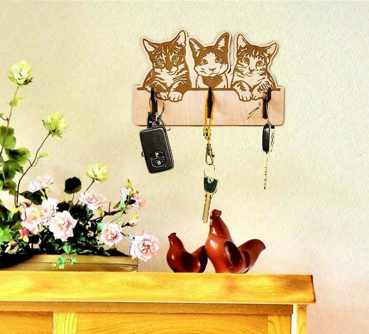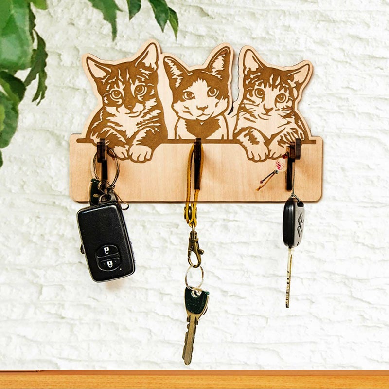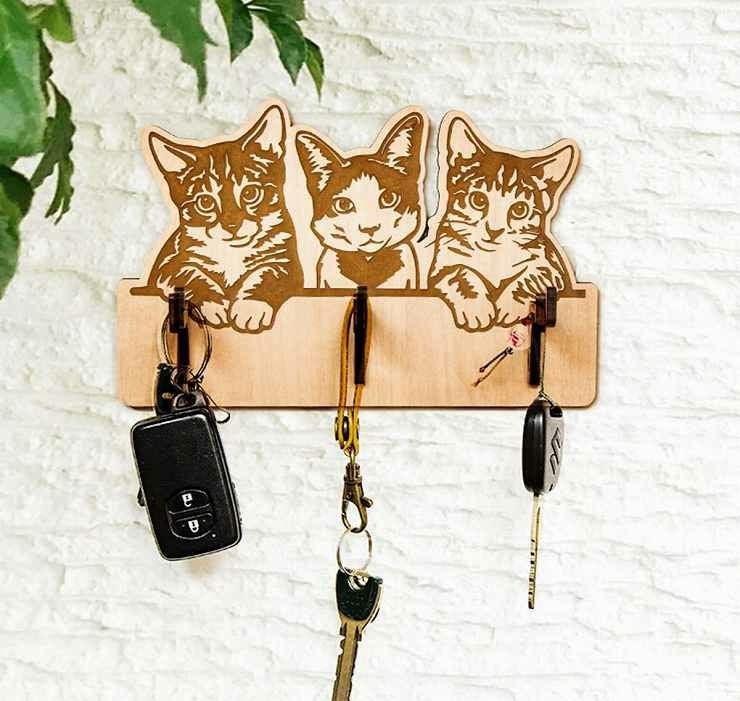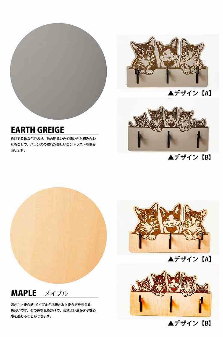key005 木製キーハンガー ネコ キーフックハンガー 3本フック キーハンガー005
