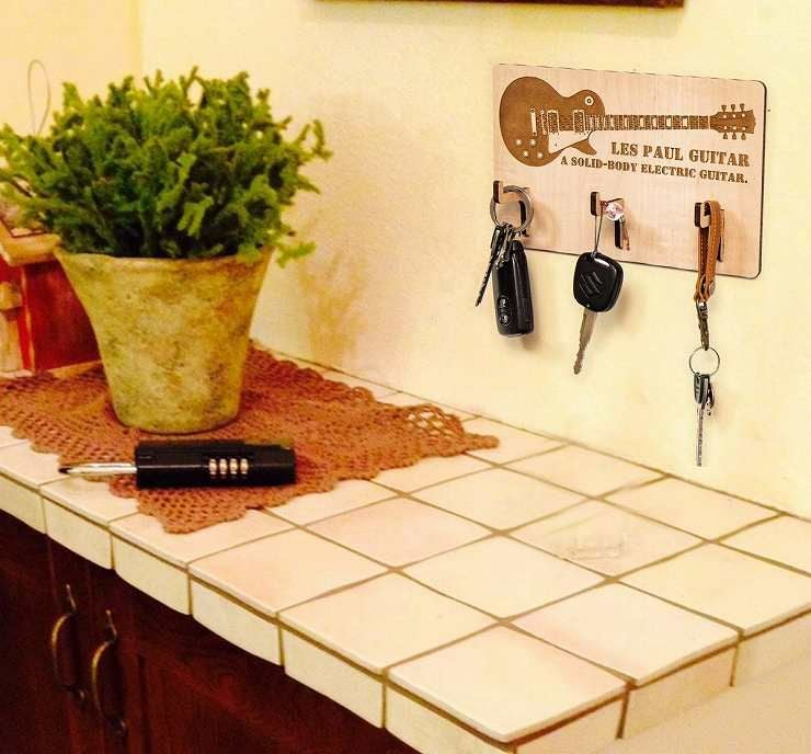 レトロなロックギターのイラストがキーフックハンガーに優雅さとほほえましさをもたらし、お部屋の雰囲気を一層明るく演出します。