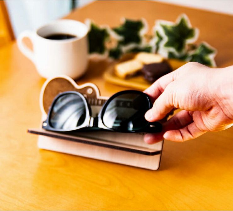 メガネスタンドを使用することで、ベッドサイドテーブルの上やリビング、デスクの上などにきちんと保管することができます。また、テーブルや棚に放置するよりも、スタンドに立てておくことで、キズや汚れを予防させることができます。