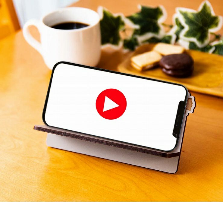 横置き型のデザインなので、リビングやデスクなどの場所に置いてもスペースを取らず、スッキリとした印象を与えます。横置きのスマートフォンスタンド(スマホスタンド)として動画再生用にも便利です。