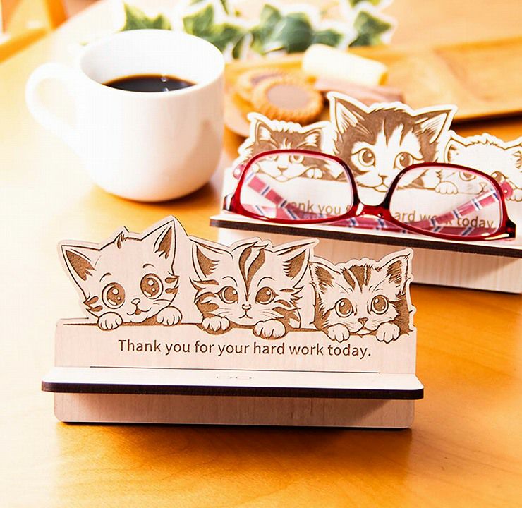 メガネスタンド 木製 かわいい ネコ メガネスタンド017