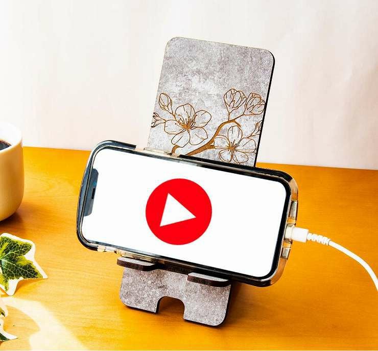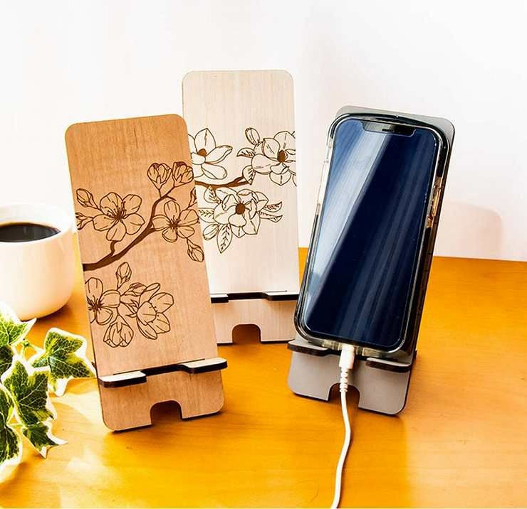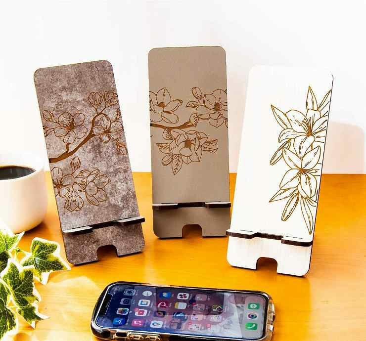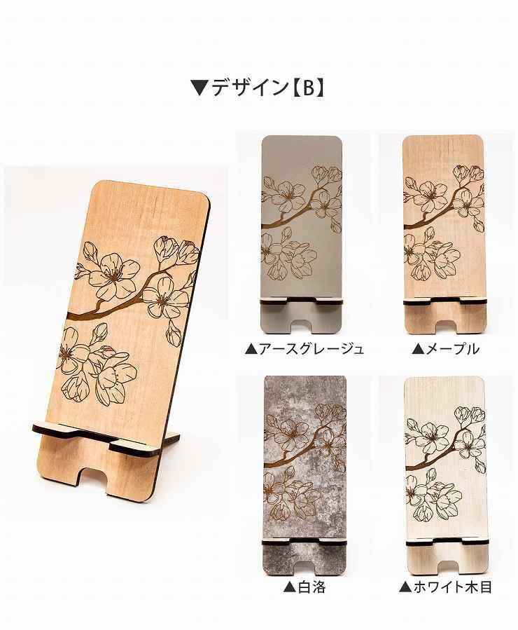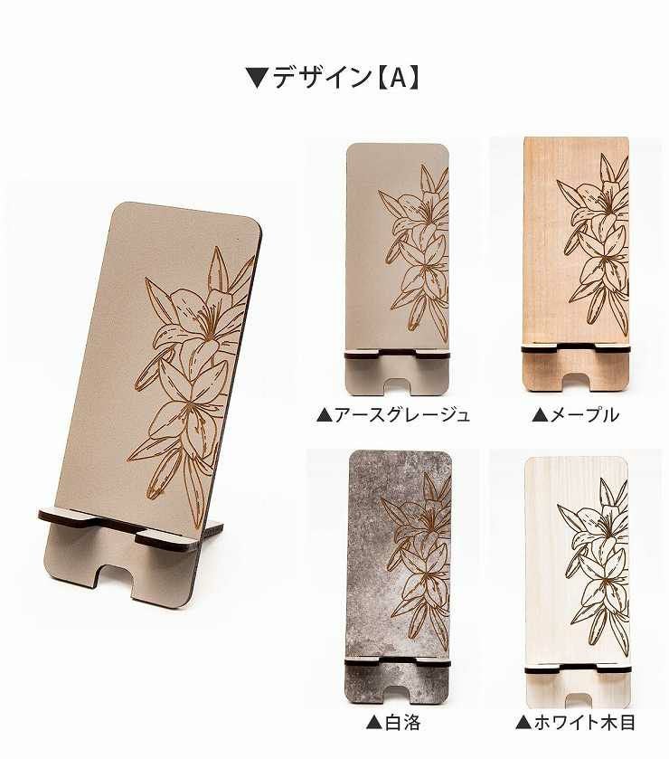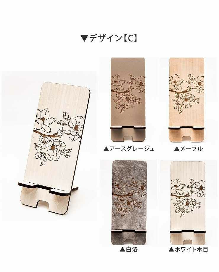 phone_stand006 3種から選べるデザイン 木製 スマホスタンド 花柄 高さ185mm スマホスタンド006