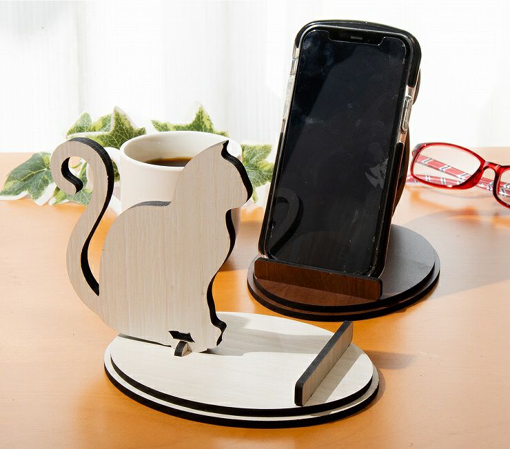 スマホスタンド 木製 動物 ネコ 猫 シルエット スマホスタンド014