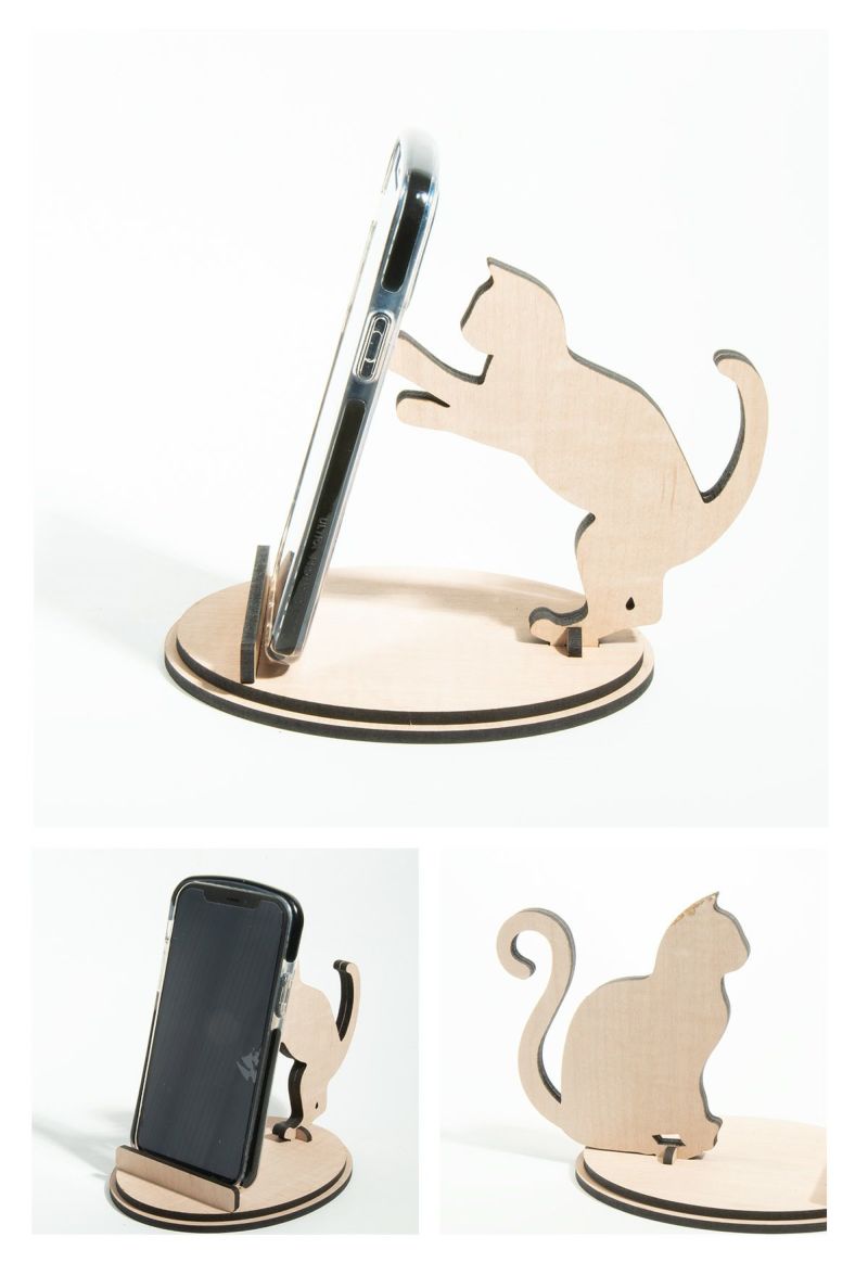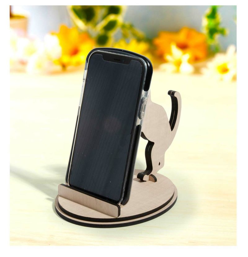 phone_stand014 スマホスタンド 木製 動物 ネコ 猫 シルエット スマホスタンド014