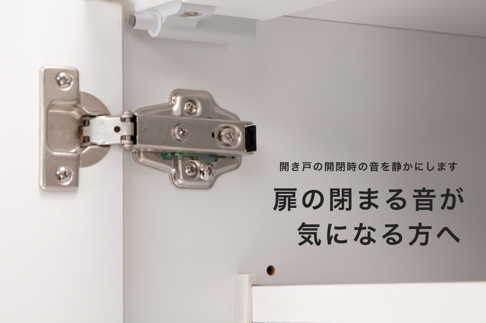 開き戸をソフトクローズ化することで、「バタンッ」と閉まる音を軽減し、開き戸を静かにゆっくり閉まるように加工いたします。