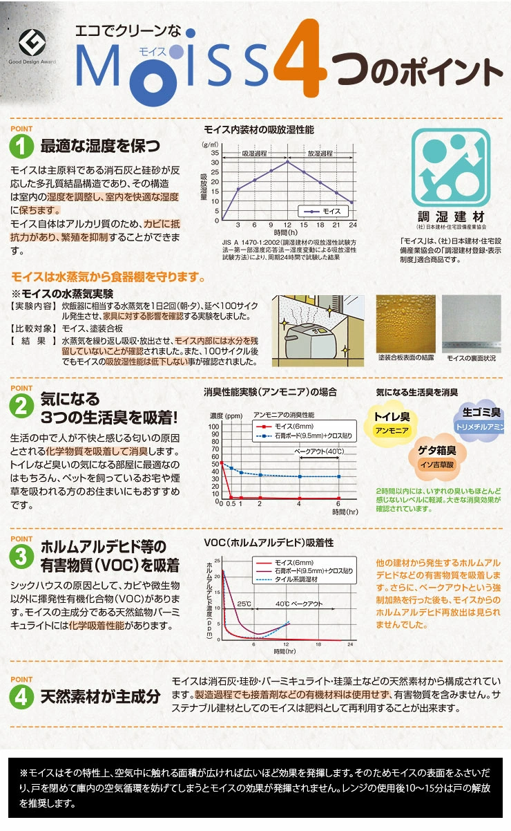 モイスは嫌な湿気や臭いを吸収するエコ素材。