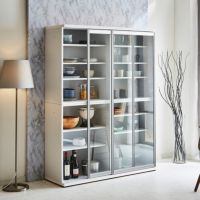 収納量とおしゃれなガラスが一番の決めてでした!奥行45センチなので140センチのカップボードでも圧迫感が無く気に入りました!