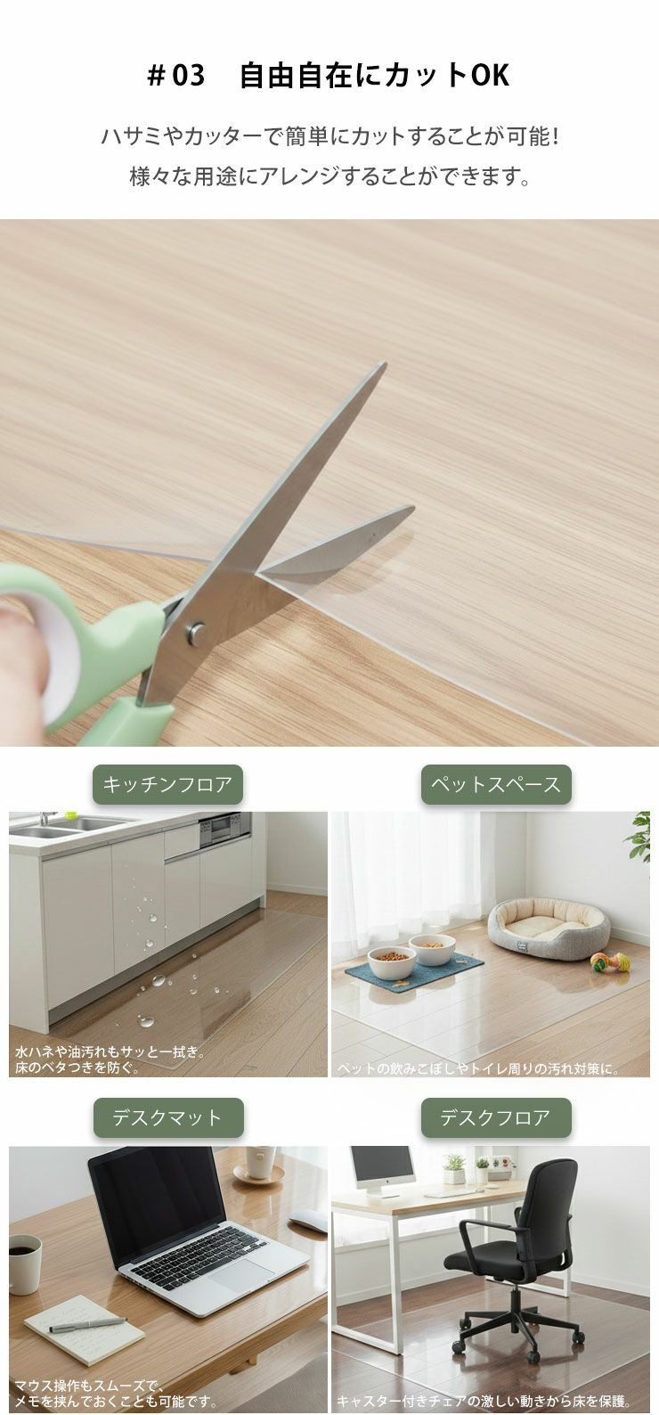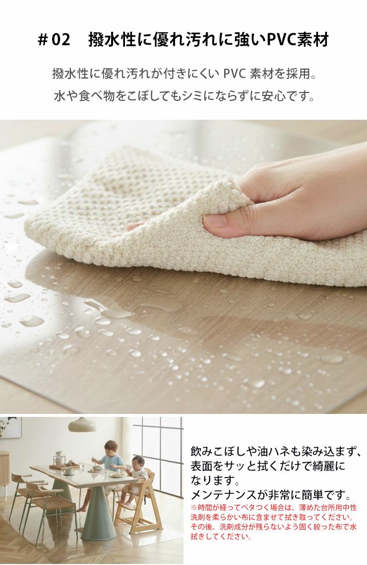 他の画像を見る DINING_MAT 家中どこでも使える万能マット 縦180×横240cm 厚み1.5mm 床保護マット クリア 透明 ダイニングマット 透明マット フロアマット キッチンマット テーブルマット チェアマット デスクマット ¥ 11,999 税込 /0件 お気に入りに登録する